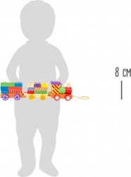 Un trenuleț de tras distractiv pentru cei mici, care dezvoltă motricitatea, coordonarea și imaginația. Datorită blocurilor din lemn colorate, aspectul poate fi ușor schimbat la locomotivă și la cele două vagoane, care pot fi cuplate și trase cu o sfoară. Culorile și modelele vesele invită la joacă și învățare.
