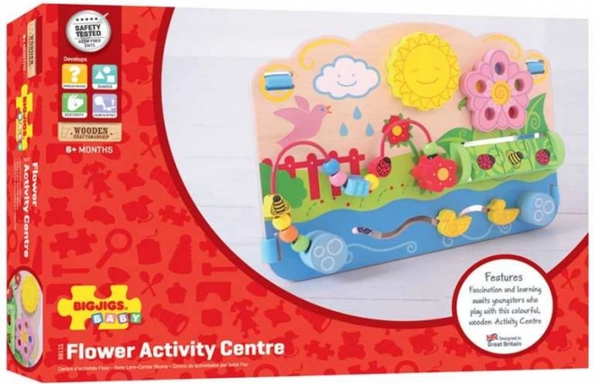 Tabla motrică din lemn BIGJIGS BABY Flori aduce o lume colorată de activități care susțin dezvoltarea naturală a copiilor de la 6 luni. Cei mici pot glisa rățuștele pe traseu, pot roti discul labirintului și o pot ajuta pe buburuză, pe bondar și pe fluture să se deplaseze în sus și în jos pe labirintul cu mărgele. Fiecare element este conceput pentru a invita la explorare și pentru a antrena prinderea și coordonarea.