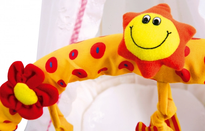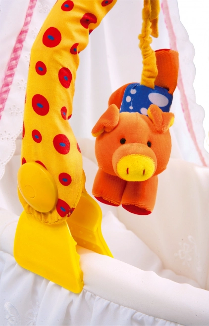 Caruselul poate fi ușor montat pe cărucior sau pătuț, asigurând confort și practicitate.