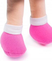 Potrivită încă de la naștere, păpușa Melody respectă normele europene actuale de siguranță și este realizată din materiale de calitate precum material textil și lână.