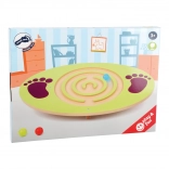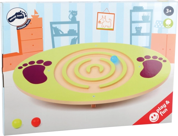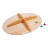 Placa de echilibru este fabricată din lemn natural certificat și oferă o construcție ecologică și durabilă. Copiii pot sta pe platforma ovală și se pot strădui să-și echilibreze corpul în timp ce conduc bile colorate prin labirintul decupat. Acest mod captivant de joacă încurajează competiția și dezvoltarea abilităților motorii esențiale.