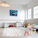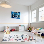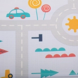 Covorașul oferă două motive diferite - pădurea și strada cu drumuri și mașini, ceea ce oferă copiilor diferite scenarii de joacă și schimbă atmosfera camerei.