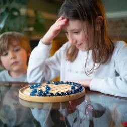 Descoperă distracția atemporală cu solitarul din lemn BIGJIGS TOYS. Bilele albastre lucioase și tabla circulară finisată cu grijă creează un joc logic elegant care îți pune la încercare istețimea și răbdarea. Scopul este ca, sărind peste bile pe rând, să rămână pe tablă o singură bilă.