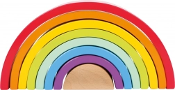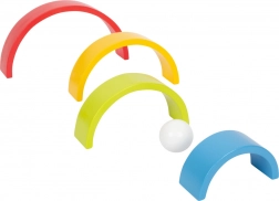 Acest curcubeu robust din lemn este perfect pentru cei mici. Datorită culorilor vii, atrage copiii la joacă și le dezvoltă atât motricitatea fină, cât și gândirea creativă. Fiecare set include o bilă albă care completează impresia generală și oferă oportunități suplimentare de joacă.