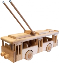 Troleibuzul este realizat din lemn de fag dur de înaltă calitate, cu suprafață netedă și margini rotunjite pentru joacă în siguranță.