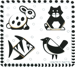 - Design alb-negru contrastant – ideal pentru dezvoltarea vizuală a celor mici