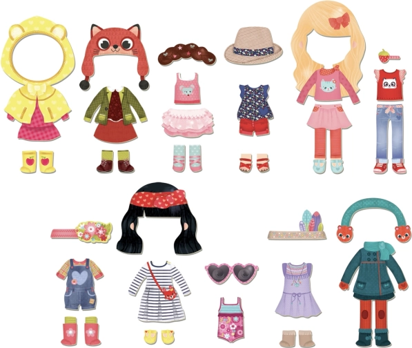 Îmbrăcarea cu piese magnetice dezvoltă coordonarea, concentrarea și imaginația. Copiii își exersează abilitățile într-un mod distractiv.
