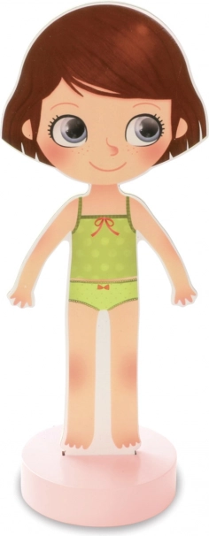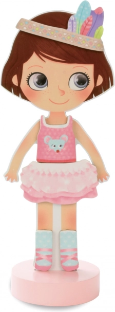 Păpușa magnetică pentru îmbrăcat Chloe este jucăria ideală pentru copiii care iubesc moda și stilul. Suportul stabil din lemn asigură îmbrăcarea comodă și prezentarea ținutelor. Datorită setului bogat de piese magnetice, se pot combina nenumărate look-uri – de la rochițe și paltonașe până la căciuli și pantofi.