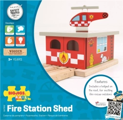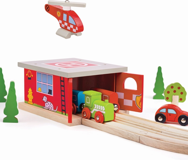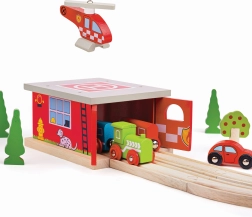 Extinde lumea trenulețelor copiilor cu un depozit de pompieri cu heliport plin de acțiune. Imprimeuri detaliate, construcție cu trecere și elicopter inclus, toate invită la povești captivante și misiuni de salvare. Stația este realizată cu grijă din lemn de calitate și respectă standardele europene de siguranță.