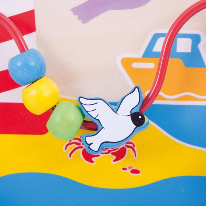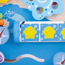 Labirint rotativ, căluți de mare care se rotesc, peștișori glisanți și sârmă cu mărgele și pescăruși mențin atenția copiilor și dezvoltă motricitatea fină și coordonarea.