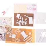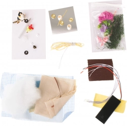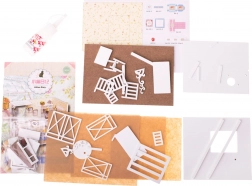 În pachet găsiți tot ce aveți nevoie: piese pentru cameră, elemente de mobilier și decorațiuni, adeziv și un ghid detaliat cu imagini. Iluminarea este alimentată de 2× AAA 1,5 V și 3× LR54 1,5 V (bateriile nu sunt incluse în pachet). Recomandat de la 8 ani. Modelul final are dimensiunile 17,1 × 13 × 11,6 cm; ambalajul 25 × 18 × 6 cm.