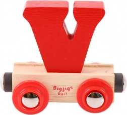 Vagonul de lemn cu litera V extinde perfect orice circuit feroviar din lemn și, în același timp, susține învățarea alfabetului într-un mod ludic. Datorită cuplelor magnetice, îl conectați cu ușurință la alte vagoane și locomotive. Litera poate fi îndepărtată de pe vagon și combinată cu altele, astfel încât copiii își pot alcătui nume, inscripții sau mesaje.