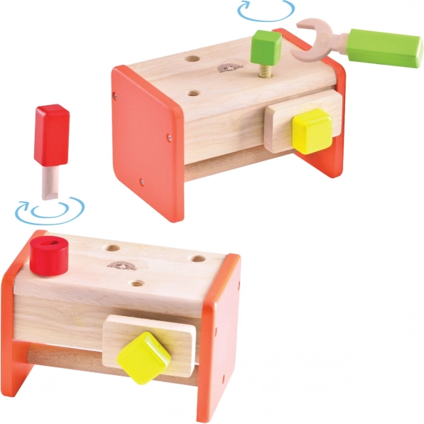 Lădița se transformă ușor într-o masă de lucru cu menghină, permițând copiilor să se joace și să învețe în același timp.