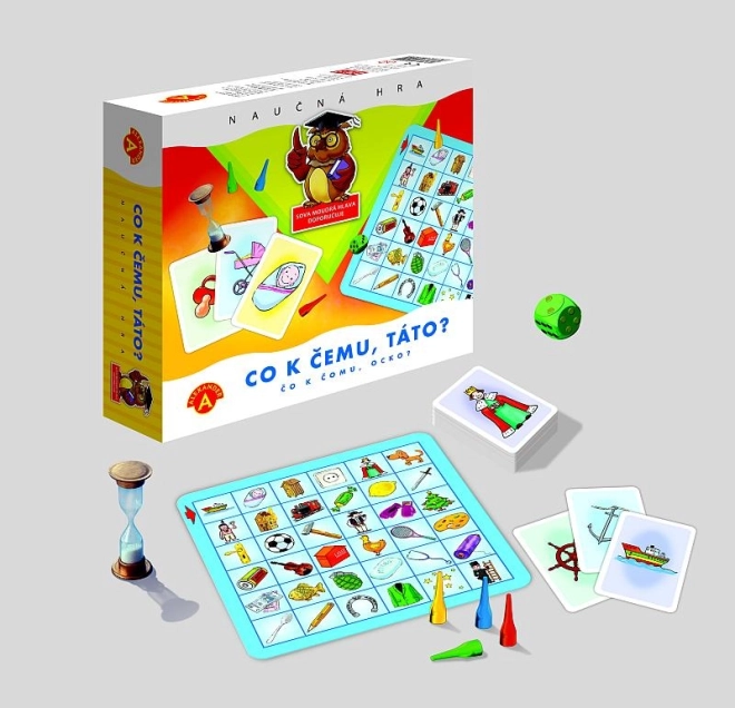 Jocul 'La ce, tăticule?' oferă trei niveluri de dificultate care se adaptează vârstei și experienței jucătorilor. Sarcina este de a găsi conexiuni între imaginile de pe tabla de joc și carduri, ceea ce întărește abilitățile copiilor în domeniile logicii și cunoașterii.