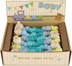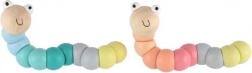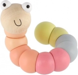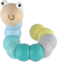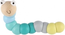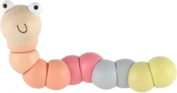 Acest viermișor/omiduță din lemn este alcătuit din segmente colorate, netede, care se îmbină și permit îndoirea ușoară în diverse forme. Datorită nuanțelor pastelate plăcute și feței zâmbitoare, copiii îl îndrăgesc pe loc. Este ideal pentru joacă distractivă și pentru dezvoltarea naturală a motricității fine și a creativității.