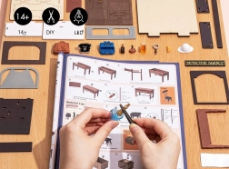 Kitul este conceput pentru asamblare comodă, fără a fi necesară vopsirea. Te așteaptă un set bogat de detalii, materiale de calitate și sigure și un manual ilustrat clar în limba engleză. După finalizare, vei obține o decorațiune de efect și un subiect de conversație care se evidențiază pe raft sau pe birou.