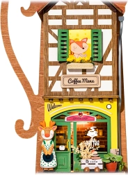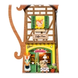 Conținutul pachetului include tot ce este necesar pentru montaj, inclusiv piese din lemn, decorațiuni, vopsele, adeziv, pensulă și pensetă. Iluminarea este ușor de ajustat și de pus rapid în funcțiune cu ajutorul unui comutator. Bateriile micro (2xAAA) nu sunt incluse; livrat cu instrucțiuni detaliate.
