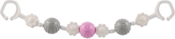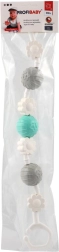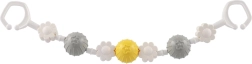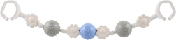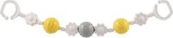 Două cleme robuste la capete permit montarea rapidă pe cărucior sau pe pătuț și asigură o poziție stabilă a jucăriei chiar și în timpul deplasării.