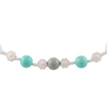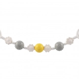 Florile și biluțele alternante, cu texturi diferite, stimulează simțul tactil, vederea și capacitatea de concentrare și încurajează bebelușul să apuce și să rotească.