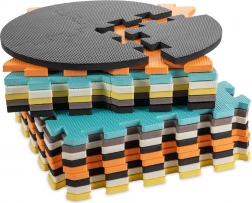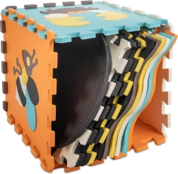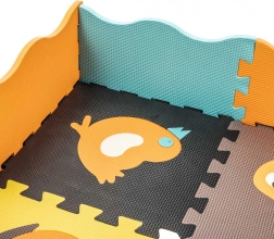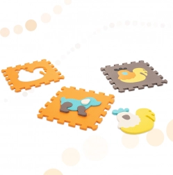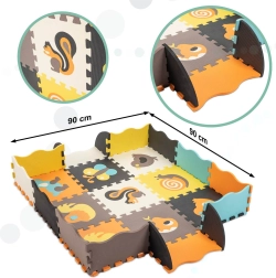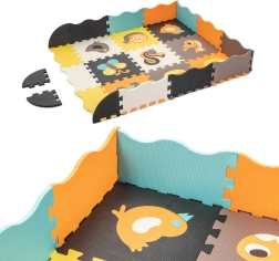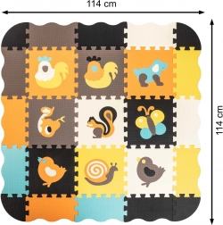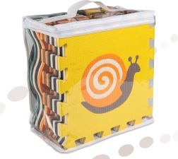 Acest covoraș mare din spumă este format din 25 de piese (9 piese principale cu animăluțe detașabile și 16 rame de margine). Datorită texturii mai pronunțate a suprafeței și culorilor contrastante, stimulează în mod natural văzul și simțul tactil. Spuma EVA moale amortizează căderile la primii pași și protejează de frigul podelei.