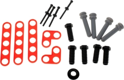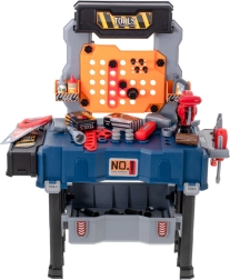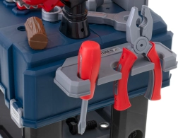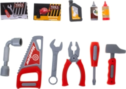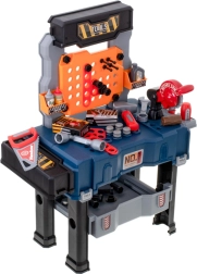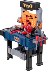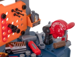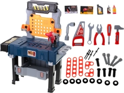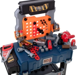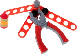 Sunt incluse șuruburi, piulițe, cuie, fierăstrău, chei, șurubelniță, ciocănel, clește și conectori – totul pentru un joc realist și creativ.