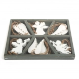 Vă prezentăm decorațiunile de Crăciun din lemn Small Foot, îngeri, care transformă ornamentica tradițională de Crăciun cu eleganță modernă și farmec natural. Acest set conține 18 decorațiuni lucrate manual, fiecare cu un design unic, ce oferă bradului și interiorului dvs. o notă de liniște și căldură.