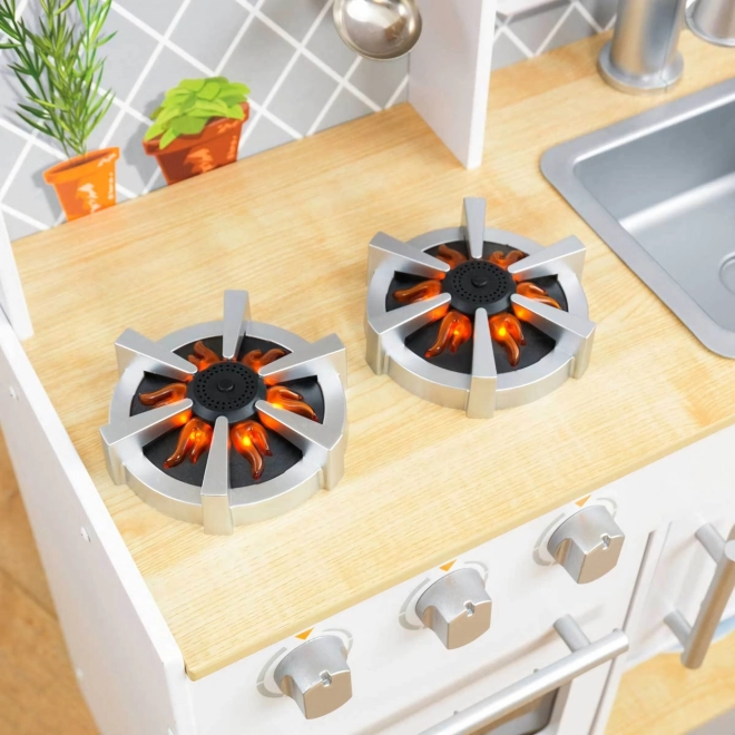 Copiii pot găti cu efecte de lumină și sunet pe echipamente de bucătărie reproduse realist.