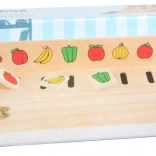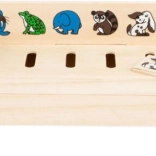 Descoperă jocul din lemn pentru introducerea pieselor, care îi ajută pe copii să învețe și să se joace în același timp. Conține 5 plăci glisante și 50 de pătrățele cu simboluri, datorită cărora copiii își exersează recunoașterea culorilor, formelor, animalelor, fructelor, îmbrăcămintei și cifrelor. Construcția solidă din lemn și capacul cu închidere sigură cu 2 cleme asigură depozitarea ușoară a tuturor pieselor și ordinea după joacă.