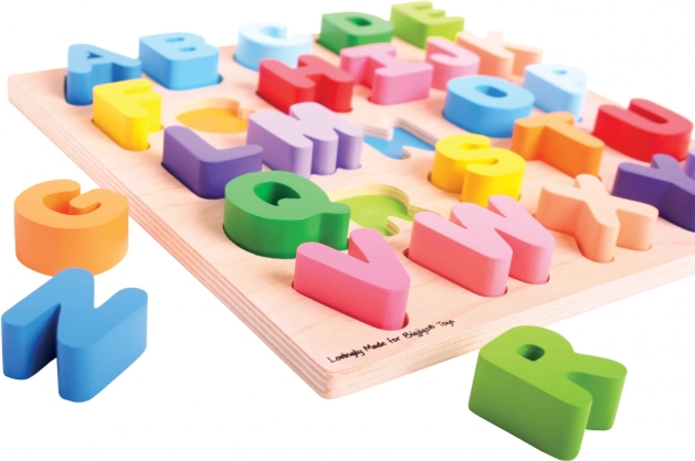 Mare alfabet din lemn Bigjigs oferă copiilor o oportunitate unică de a învăța literele printr-o abordare jucăușă și educativă. Fiecare literă este colorată vesel, ceea ce face mai ușoară recunoașterea și memorarea. Puzzle-ul este fabricat din materiale de înaltă calitate, fiind sigur și ideal pentru mâinile mici ale copiilor.