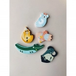 Acest puzzle din lemn de calitate aduce copiilor bucuria descoperirii și a învățării. După scoaterea fiecărui animăluț, copiii găsesc sub piesă o suprafață tactilă diferită – moale, aspră sau texturată – care dezvoltă natural percepțiile tactile și susține integrarea senzorială. Piesele robuste, ușor de apucat, se potrivesc perfect în mâinile mici.
