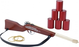 Doar întinde benzile de cauciuc, țintește spre dozele metalice mini și lovește-le cu un foc precis. Jocul susține coordonarea ochi–mână, concentrarea și motricitatea fină. Totul este conceput pentru joacă sigură acasă.