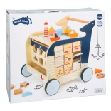 Porniți într-o explorare cu umblătorul de lemn în formă de balenă. Acest umblător nu doar ajută copiii să facă primii pași, dar oferă și diferite jucării interactive, care sprijină dezvoltarea motricității.