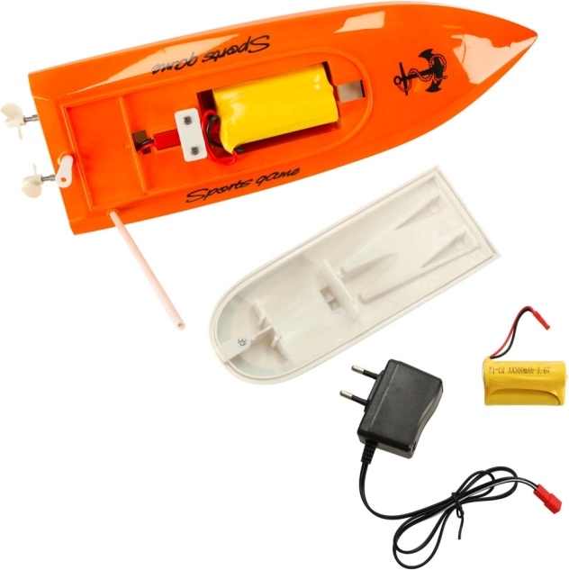 - barcă, telecomandă, acumulator, încărcător de rețea, antenă, manual