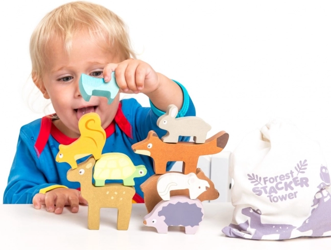 Stivuirea animalelor în turn susține coordonarea mână–ochi, precizia prinderii și jocul imaginativ. Activitate ideală pentru toddleri.