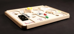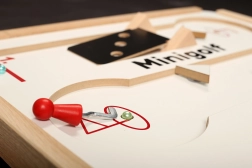 Minigolful de masă aduce o distracție originală pentru copii și adulți. Patru piste cu obstacole pe ventuze permit poziționarea liberă și combinații nesfârșite. Fiecare joc este diferit, antrenează atenția, răbdarea și motricitatea fină. Datorită materialelor robuste este ideal pentru joc frecvent acasă și în școli.