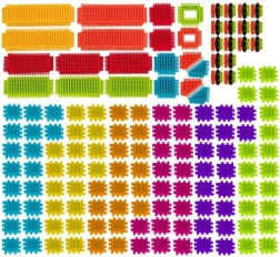 Acest set variat cu structură tip arici le permite copiilor să creeze o cantitate nesfârșită de construcții – de la căsuțe și vehicule până la castele fantastice. Piesele au capete rotunjite pentru joacă sigură de la 3 ani și se conectează și deconectează ușor.
