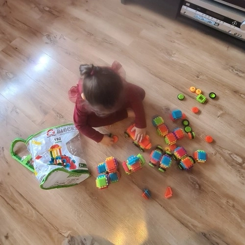 Setul conține 192 de piese în diverse forme și culori, care dezvoltă gândirea logică, îndemânarea și răbdarea. Materialul durabil ABS asigură o durată de viață îndelungată și stabilitatea modelelor construite.