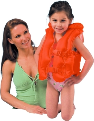 Două catarame robuste, ușor reglabile, permit strângerea rapidă și fermă, adaptată exact la corpul copilului. Datorită culorii portocalii intense, copilul este foarte vizibil atât în apă, cât și la mal, ceea ce contribuie la o siguranță sporită.