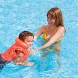 Oferiți-i copilului dvs. sprijin de încredere la primele mișcări de înot. Această vestă gonflabilă pentru copii din vinil rezistent îmbină siguranța ridicată cu confortul: construcția cu trei camere cu compartimente independente și valve antiretur asigură flotabilitate stabilă, în timp ce gulerul moale susține capul și gâtul.