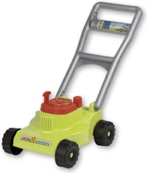 Mașina de tuns iarba este oferită în două variante de culori, adăugând la atractivitate. Este realizată din plastic robust și sigur, rezistent și ușor de manevrat. Pe mânerul rabatabil este plasată o manetă mobilă, deși fără funcție reală, aduce o experiență de joc mai autentică.