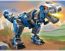 Un singur set, trei modele. Reconstruiește ușor între un tiranozaur robotic înfricoșător și două vehicule off‑road diferite pentru distracție fără sfârșit.