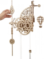 Ugears Aero este un ceas de perete mecanic din placaj de calitate, pe care îl asamblezi singur fără lipici. Priveliștea fascinantă a mecanismului de ceas expus cu pendul și greutate oferă o experiență unică a ingineriei de precizie. Timpul se citește de pe două cadrane care se rotesc în sens opus acelor de ceasornic, în timp ce modelul decorativ de balon cu aer cald urcă periodic și, la fiecare oră fixă, coboară pentru a anunța.