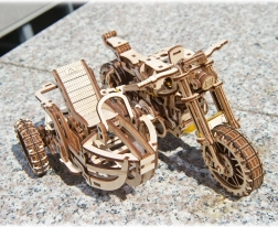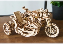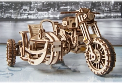 După finalizare, obții un model impresionant de motocicletă cu ataș, care va înfrumuseța raftul și va încânta orice iubitor de tehnică.