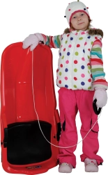 Șnurul rezistent cu mâner permite tragerea ușoară a săniei în pantă și manevrarea pe teren drept.