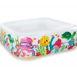 Piscina gonflabilă inspirată de lumea subacvatică este accesoriul ideal pentru zilele de vară. Este fabricată din vinil de înaltă calitate cu grosimea de 0,28 mm, ceea ce îi asigură durabilitatea și o viață lungă. Datorită peticei de reparare inclusă în pachet, este pregătită pentru situații neașteptate.