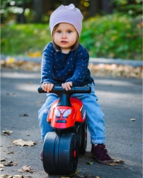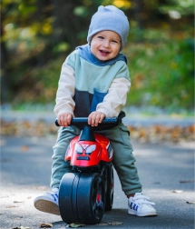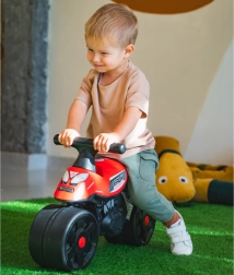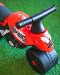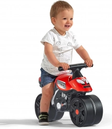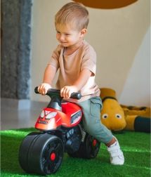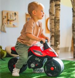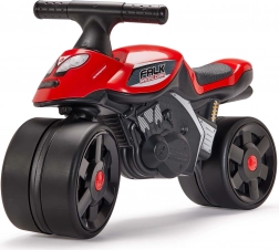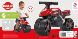 Bicicleta de echilibru tip motocicletă FALK Racing, roșie, este o alegere excelentă pentru primele plimbări independente. Datorită roților late, este foarte stabilă pe diferite suprafețe, iar roata față pivotantă facilitează manevrarea chiar și în spații mai restrânse. Execuția de calitate din plastic foarte rezistent face față jocului zilnic, atât în interior, cât și în exterior.