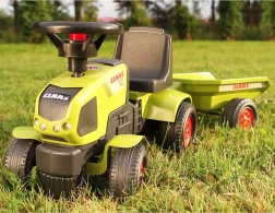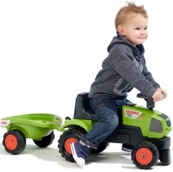 Acest tractor robust de împins pentru cei mai mici încântă prin aspectul realist CLAAS și manevrabilitatea facilă. Datorită remorcii detașabile, copiii își pot transporta jucăriile sau mărunțișurile din atelier sau grădină, în timp ce volanul cu claxon adaugă și mai multă distracție jocului de-a fermierul.