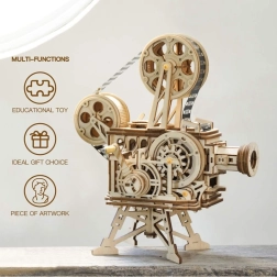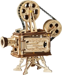 Transmisiile mecanice, bobinele și aspectul patinat transformă modelul într-un ornament stilat. Cadoul ideal pentru iubitorii de cinematografie, tehnică și puzzle-uri 3D.