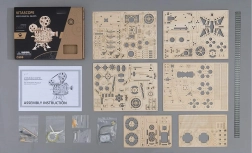 Setul conține tot ce este necesar: piese pre-tăiate din placaj, axe din oțel, diodă, bandă de film și un manual ilustrat cu cod QR pentru video de montaj. Modelul este un cadou grozav și, totodată, o decorațiune de design pentru birou sau living.