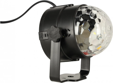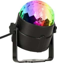 Sfera disco utilizează LED-uri 3x1W care creează o gamă largă de efecte de culoare.